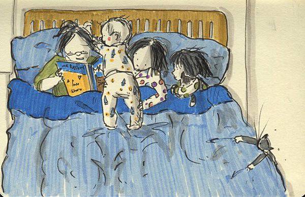 分享孩子"準時上床睡覺"的各項好處,並且保留"床邊故事"的時間,觀察孩子的體力調整故事的長短、內容、型態:寓言故事、四格漫畫、分享兒歌、念唱童謠給孩子,弟子規、三字經、慢慢進入到兒童版經典名著,二十四孝、西遊記、鏡花緣等等。(盡量避免類似福爾摩斯這類型會讓孩子越聽越緊張的故事,或是在緊張處結束。)