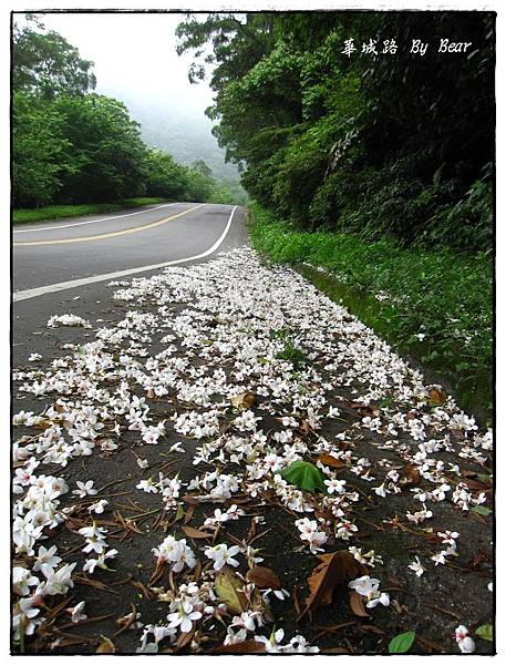 大自然今天用這麼隆重、優美又熱情的場面,回報我半年來上百次的參訪,這比歡迎國王或總統的紅地毯還要美麗、莊嚴、高貴,因為它只使用一次。我戰戰兢兢 地踩著落花前進,唯恐腳印破壞了這稀世白花地毯。但令我驚奇的是,新的落花立刻修補了我踩過的地方。這是大自然完美的設計,一條活生生的鋪花小徑。我微醉著,不由自主地、輕輕地被引向林中深處。有那麼一剎那,我認為自己已丟棄了軀殼,正輕鬆自在又滿足地走上通往更高境界的地方。也只有像我這樣深入、珍惜大自然的人,才會受到邀請,才能找到這條美麗的祕徑。