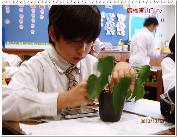 特別一提的是五年級李昀叡,他嘗試研究電腦電磁波對植物的影響,最後決定選用金線蓮、九重葛、觀音蓮、聖誕紅四種植物進行研究,他說:探究的過程很辛苦,但是爸爸媽媽說,要有恆心、不要灰心。其實給他很大的加持力,儘管他不好意思這麼直說。更說明年還要繼續嘗試科學類的研究。看來,我們著實探出了一位小小科學家。