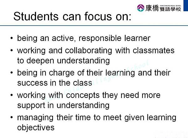 除了學校與學生方面的改變,我們更希望在家長端達到共識,一同為孩子們的學習之路努力。於是,透過親師交流時間,分享翻轉教室期望每一個孩子都能夠「有備而來」,為寶貴的50分鐘課堂先做工夫,備著先備經驗而來、備著疑問與好奇心而來。國高中的孩子可以共同參與課堂中,隨時都會激起學習火花的信念而來。國小的孩子們也能夠在這緊密、紮實的六年時光中,以五感基礎體驗出發,學會學習、學會觀察,以最具創意、多元的方式認識這個世界。