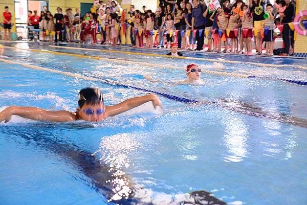 泳訓組志杰組長說,今年的家長,真的非常熱情,五彩繽紛的布條、精神抖擻的加油吶喊。給我們與小選手們莫大的鼓勵。賽前,孩子們認真把握練習的機會、賽後,孩子們同樣投入學習,與姿勢的矯正等等。但我們並不以此為滿,日後,希望能夠鼓勵更多的孩子參加水上運動會競賽。