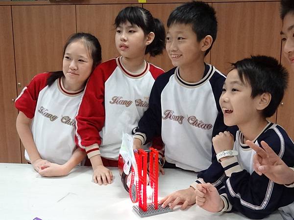 結合理化科簡單機械單元,利用輪軸、能源轉換原理當場製作、規劃、配色,每個學生必須動手操作,使用太陽能綠色能源打造出會動的個性化的風車,最後完成轉動才算闖關成功。機關王指導老師許評貴,率領學長姐們參加機關王競賽,連年獲得佳績。