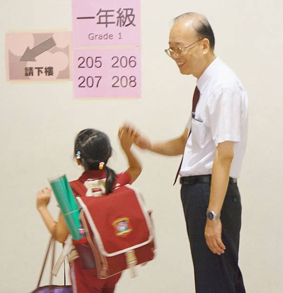 在開學的這一天,更由許銘欽校長領軍,各處室出動了所有的師長,在校園裡的各個角落,親切熱情地與每位小朋友打招呼,迎接孩子上學,並引領小寶貝們到自己的教室上課。「校長早,老師早!」耳邊盡是此起彼落的道早聲,看著孩子開心的下車、大聲地與師長們打招呼、與校長擊掌說早,快樂地走進教室,讓人覺得這一天的開始真是美好。