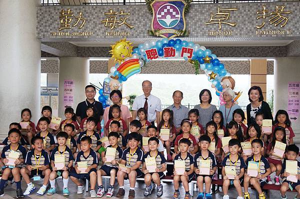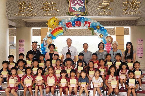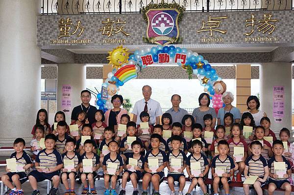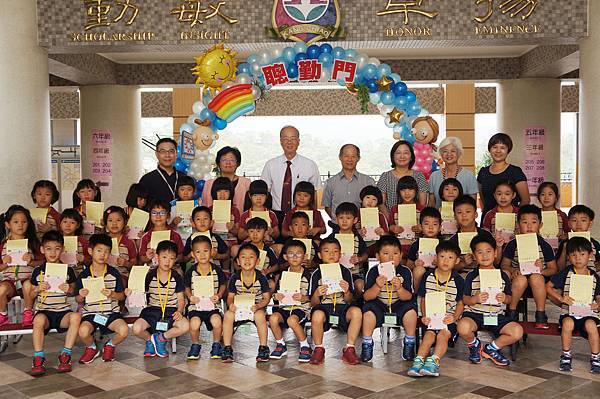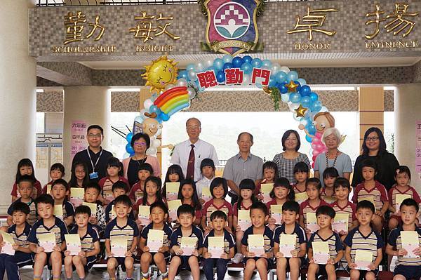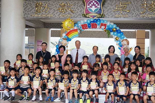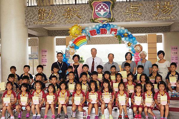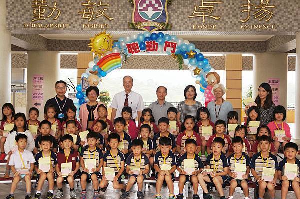在接收了各界滿滿的愛與祝福後,我們的小一新鮮人由著導師的帶領下,走過學校特別準備,由青蔥(聰明)、芹菜(勤學)佈置成的「聰勤門」,期許小朋友們勤勉求學、精進學業、修養品性。