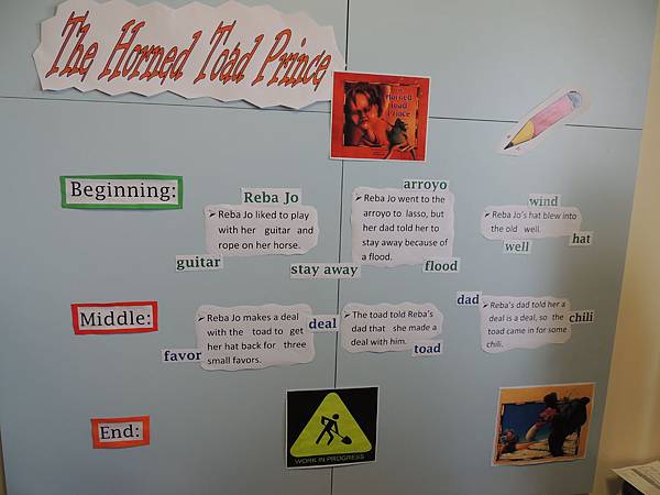 這天的英文課上的是「長角的癩蛤蟆王子」,這篇敘事詩是改編自大家耳熟能詳的「青蛙王子」童話故事。雖然大家對故事內容和情節發展並不陌生,但是要能在每個段落中抓出摘要,這「如何捨棄細節,擇取重點」的小撇歩,是小朋友們在這堂課上的學習重點。