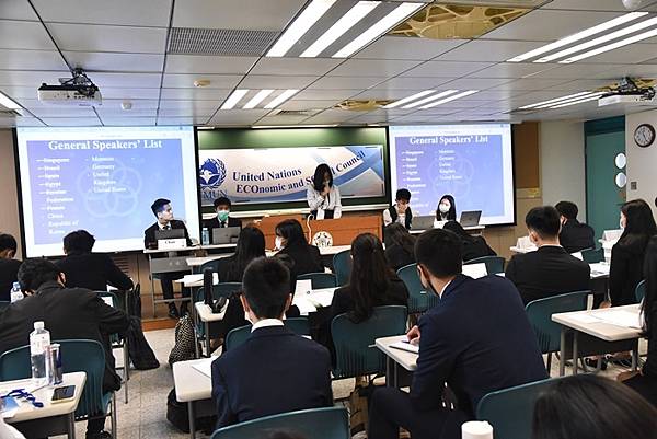 學校開設MUN社團,協助學生每年籌辦2次模擬聯合國活動,此外,也帶領學生參加國外具規模的MUN,藉此增進學生全方面的語言能力,以及學習團隊合作與領導協調能力。