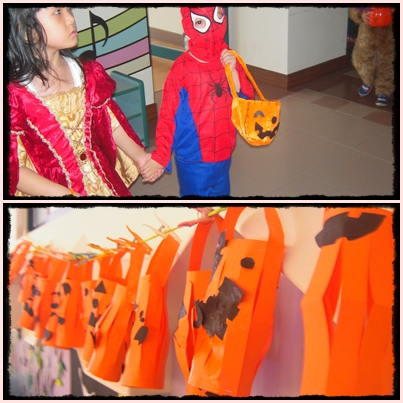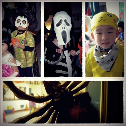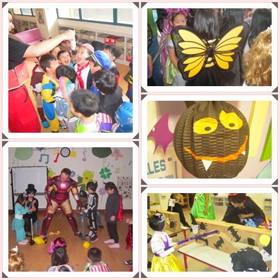 這次萬聖節小勇士闖關活動,總共規畫了八個關卡-勇氣屋Haunted House、恐怖箱Mystery Box、勇者的怒吼Brave Kids Roar、急急棒Balloon Maze、打氣救人Balloon Emergency、挑戰吸血鬼Battling the Vampire、平安橋Balance Beam、殭屍跳Jumping Game,這些都是老師們細心規劃課程、安排全部動線、道具製作以及團隊合作,才能讓今天萬聖節的所有活動在平安、順利、歡樂的氣氛中完成,今天有許多活潑而且熱心的家長蒞臨,跟著孩子們再一次度過萬聖節這有趣的節日。辦公室裡的老師,不時輕吹著麥克風,發出陣陣風聲,讓全場氣氛High到最高點,雖然被幾個機靈的孩子識破:I know! That was “YOU”. You said that. 哈哈!當然,老師是矢口否認的啦~~~